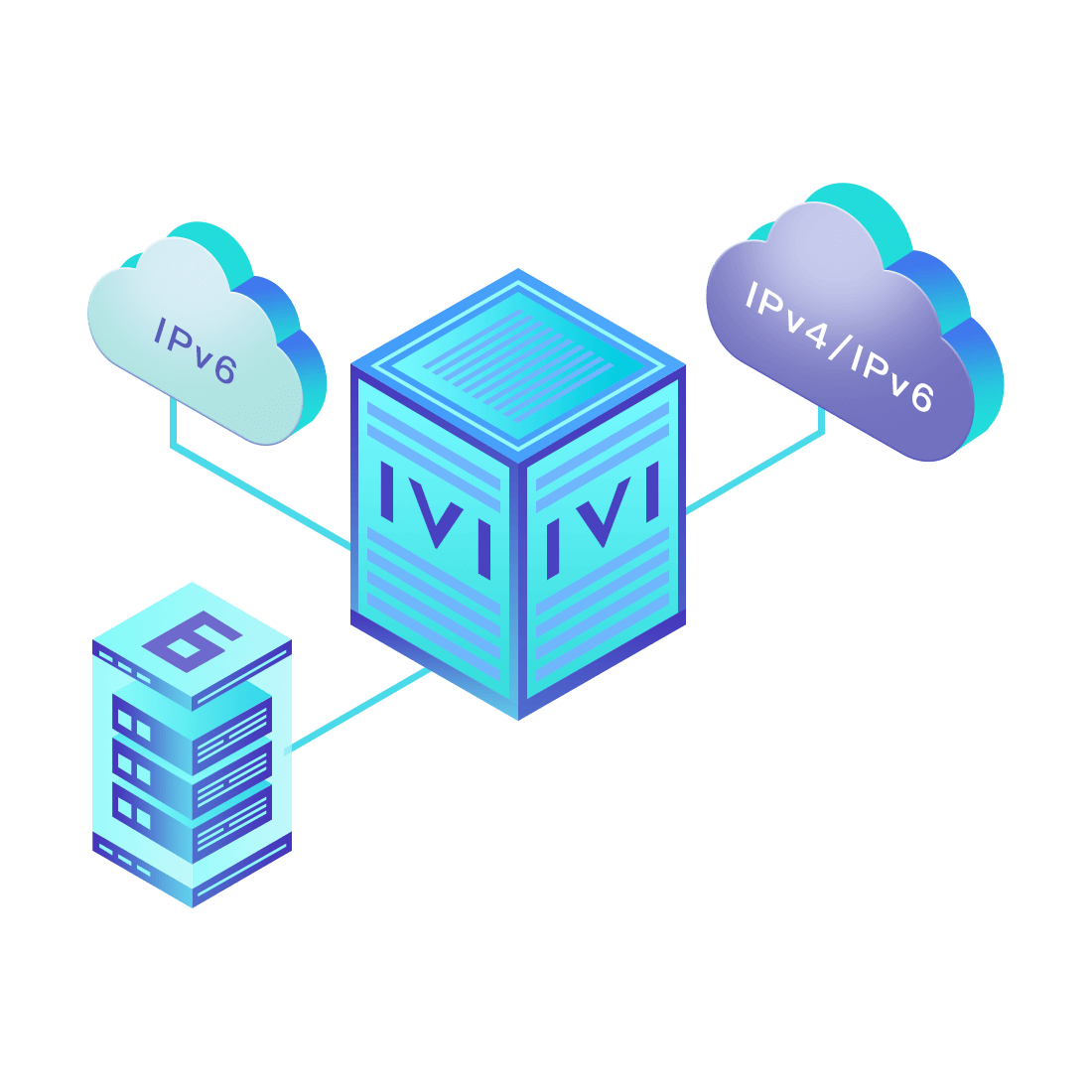 對正在進行IPv6整體升級規劃的運營商,應用IPv6升級方案2.5,通過IVI無狀態翻譯技術和純IPv6接入網絡,為雙??蛻舳撕碗p棧服務器提供連通服務。